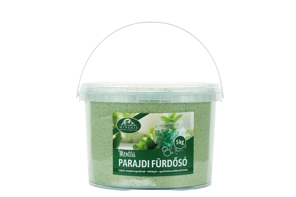 A Mineris Menta fürdősó a parajdi só 84 féle ásványi anyagának gazdagságát ötvözi a menta élénkítő, frissítő és tisztító hatásával.